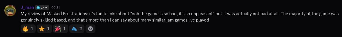 "Masked Frustrations" is a game designed to make you angry. The controls are purposely difficult. You are playing a little guy trying to escape the USU testing center. You move left and right with A and D respectively. Hold Space to start charging a jump in the direction the arrow is pointing.